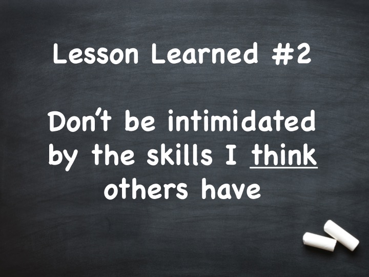 Lesson #2: Don’t be intimidated by the skills you think others have. Chances are you’re just as talented as them or can learn what you need. Step out of your comfort zone and join them. |