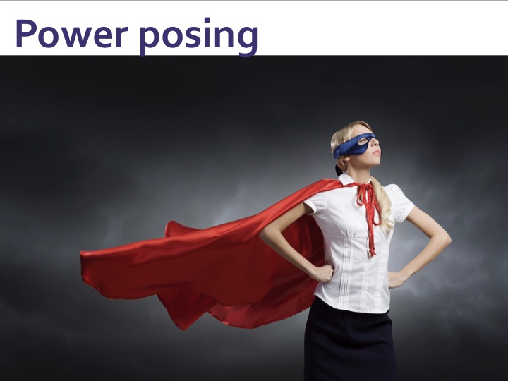 How many of you have heard of power posing? You can watch a fabulous TED talk by Amy Cuddy where she explains it. In a nutshell, she and her fellow researchers found that if you strike a power pose for just 2 minutes, two things happen: your body produces more testosterone (both in men and women) which makes us feel more powerful and confident. Our body also lowers the amount of cortisol in our system, which is an anxiety hormone. So, striking a power pose for just 2 minutes is the perfect thing to do before giving a talk.